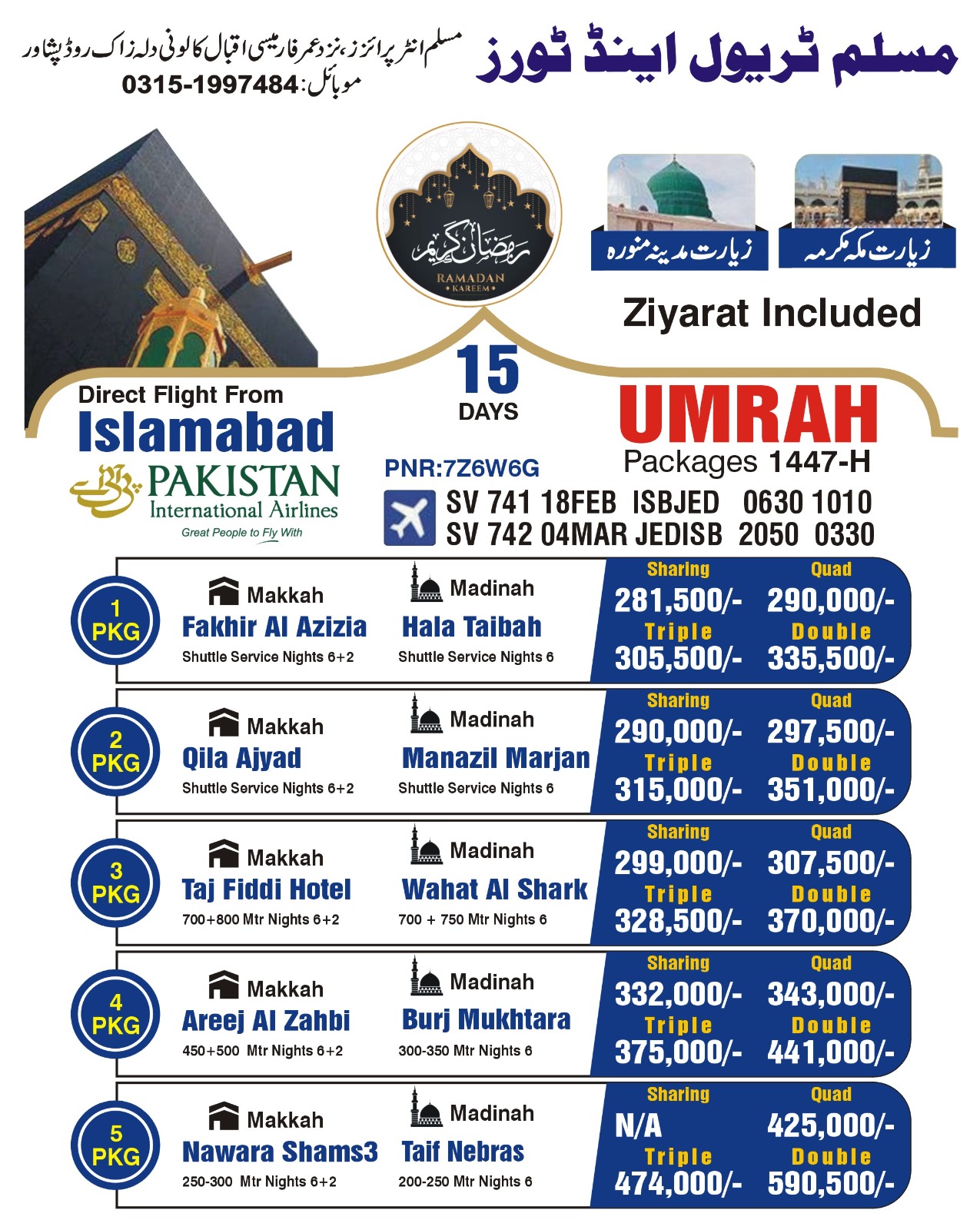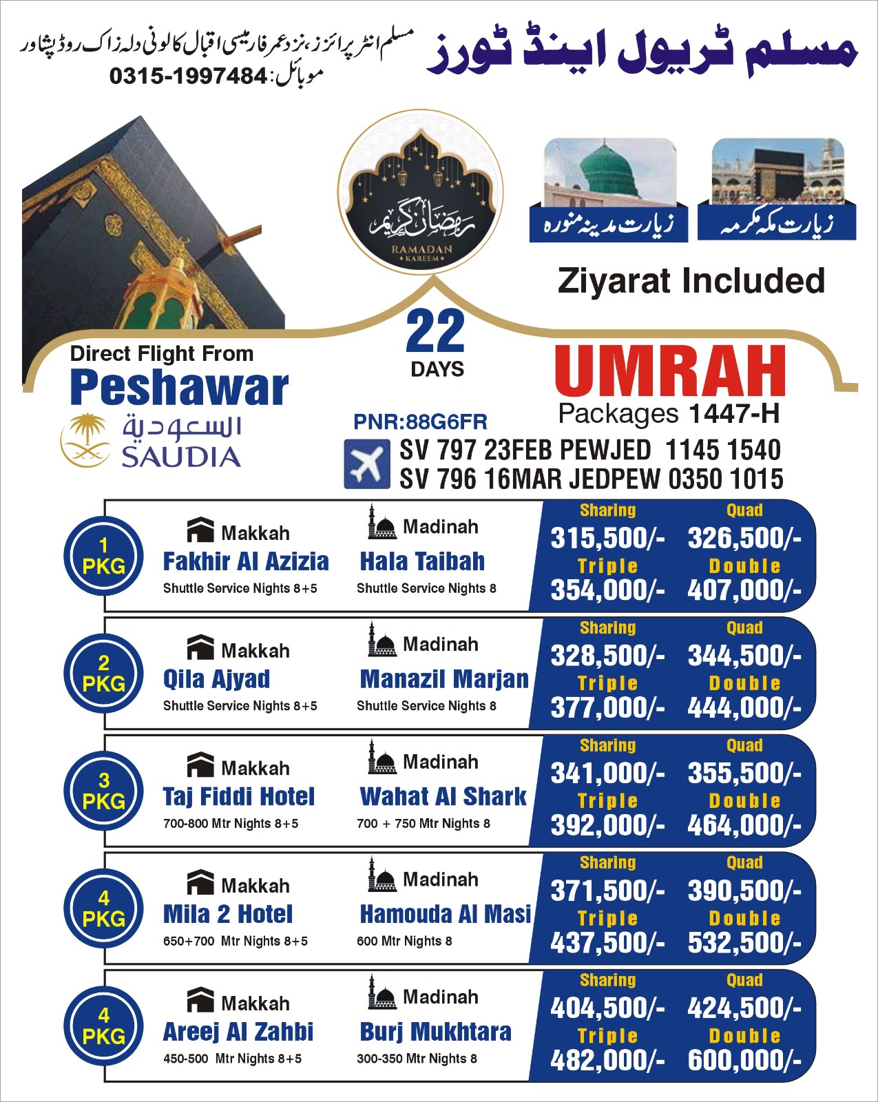 600 mtr / nights 9- Direct flight from Peshawar