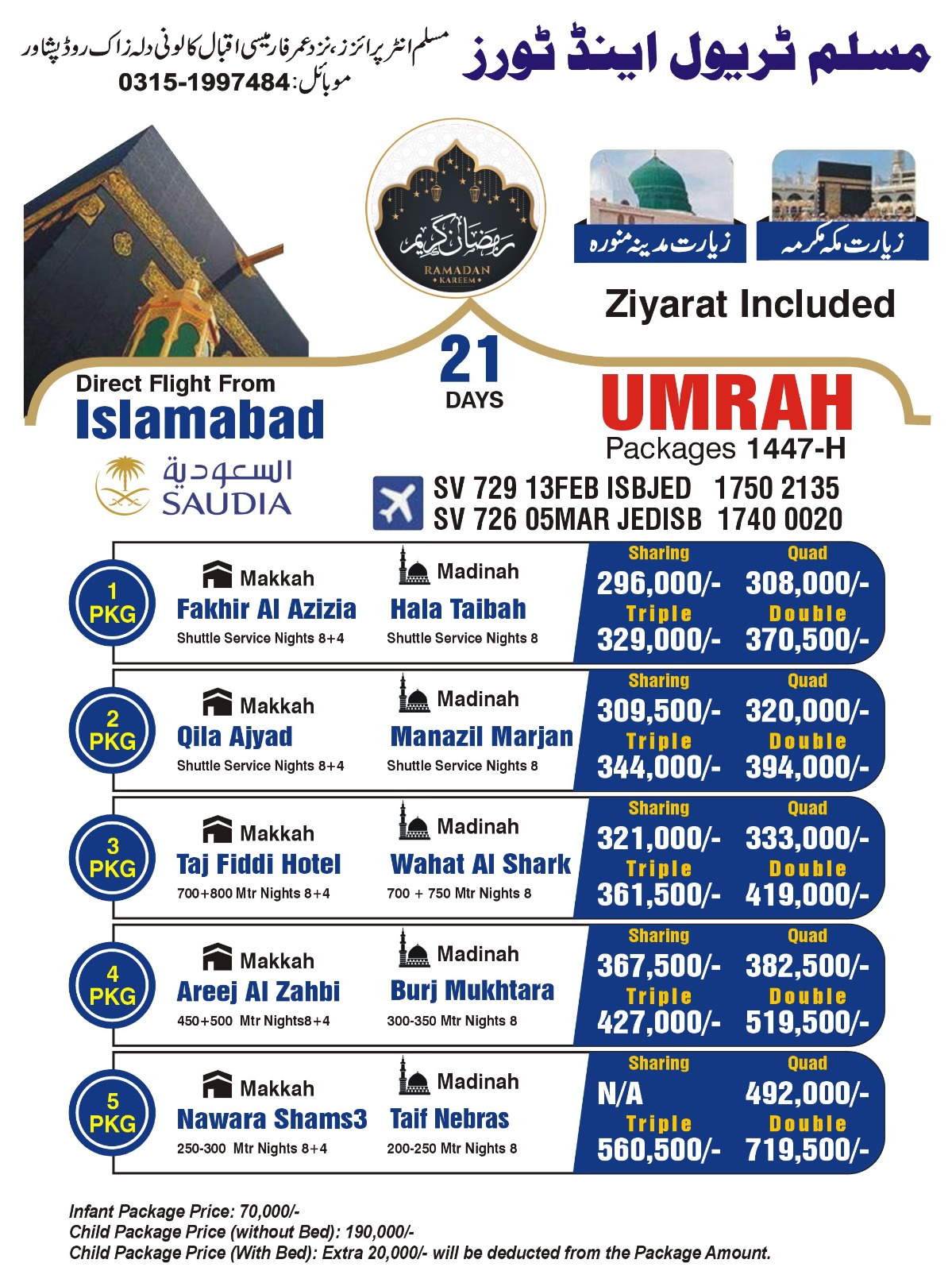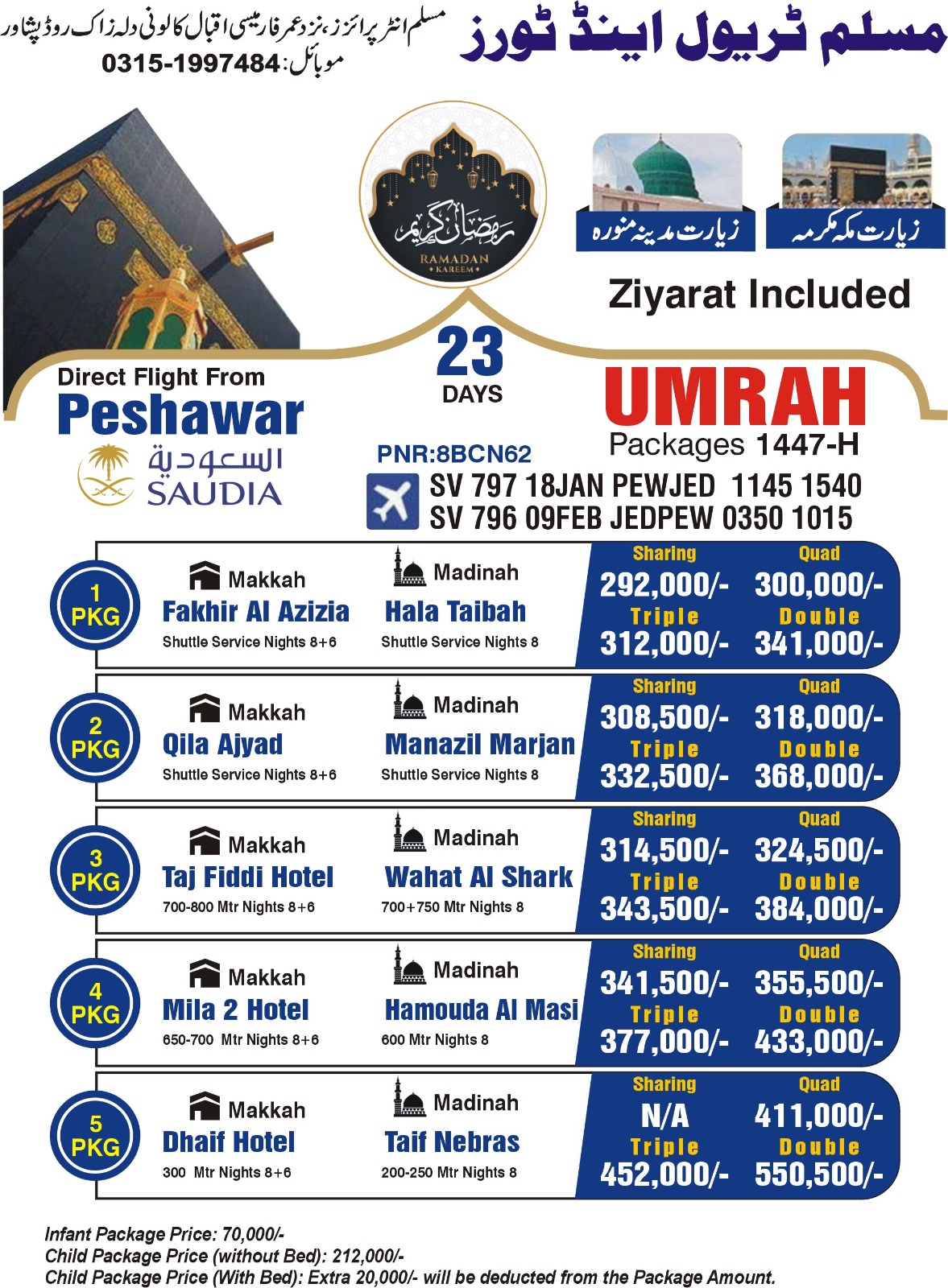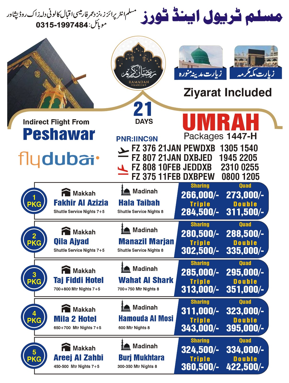 Shuttle service / nights 9- Direct flight from Peshawar